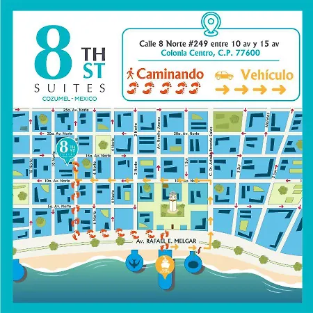 Az 8Th Street Suites apartman kínál egy teakonyhát, valamint szobákat mini hűtőszekrénybárral, teakonyhával és étkezővel. Az apartman 3 km-re helyezkedik el a Mayatlantis térségétől és körülbelül 1 km-re van a Punta Langosta móló területétől.